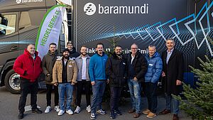 Foto: Geschäftsführung und Vertriebsteam der Heidelberg iT Management GmbH & Co. KG mit baramundi-Team vor dem Roadshowtruck auf dem Heidelberg iT-Weihnachtsmarkt 2025. Foto: Andreas Gieser